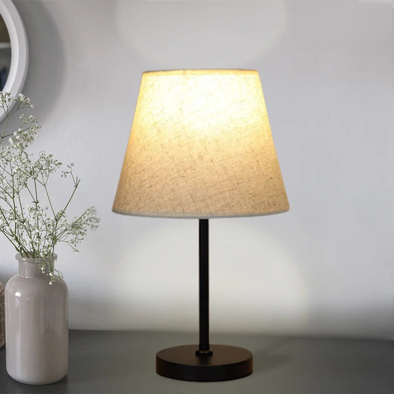Add a touch of sleek modern elegance to your space with this versatile LED table lamp. Designed for both form and function, it features a soft-touch control switch, three light color modes, and a minimalist black base with a fabric lampshade — perfect for bedrooms, desks, or living rooms.